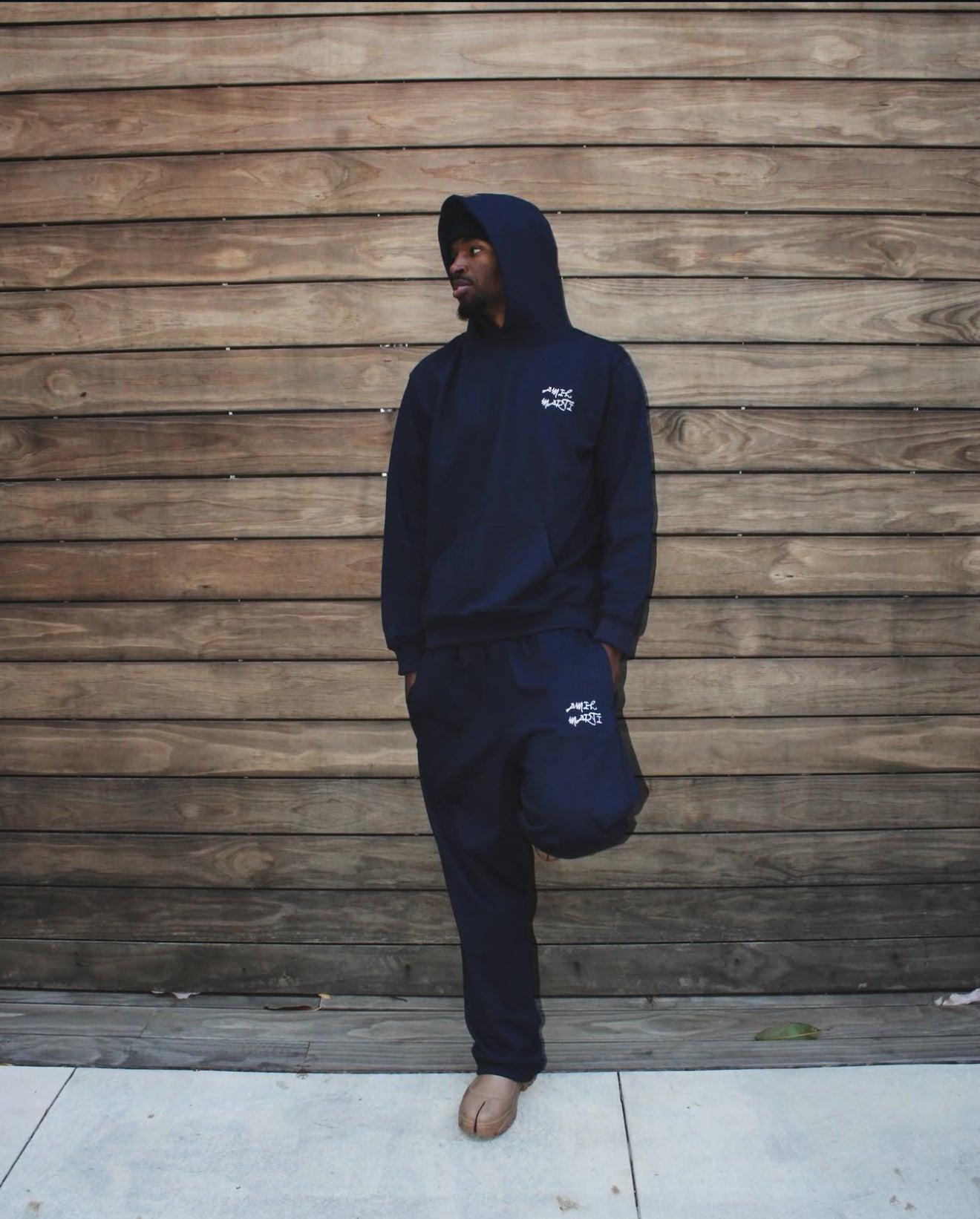 - AM emblem on bottom + shorts back pocket and top of hoodie